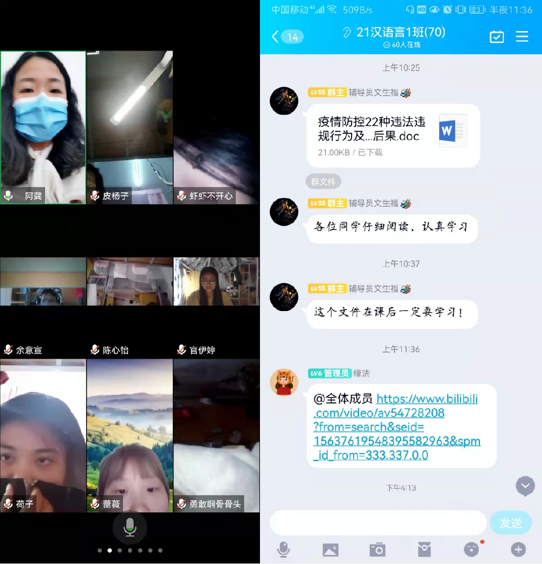 各位辅导员严格执行疫情防控相关文件要求,坚持每天通过班级群,关心问候学生,及时传达防控政策与方法,传达学校的关心与关爱,摸排学生身心状况,回应学生关切,做好数据整理与上报。