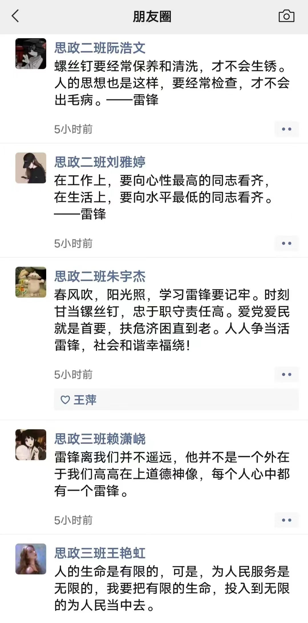 永利官网青年充分利用朋友圈这个新兴媒体来宣传雷锋语录,向身边的人积极传播雷锋精神。号召大家向雷锋学习,传承中华民族传统美德,助力“雷锋精神”弘扬与传承,让“雷锋精神”在新时代绽放更加璀璨的光芒。