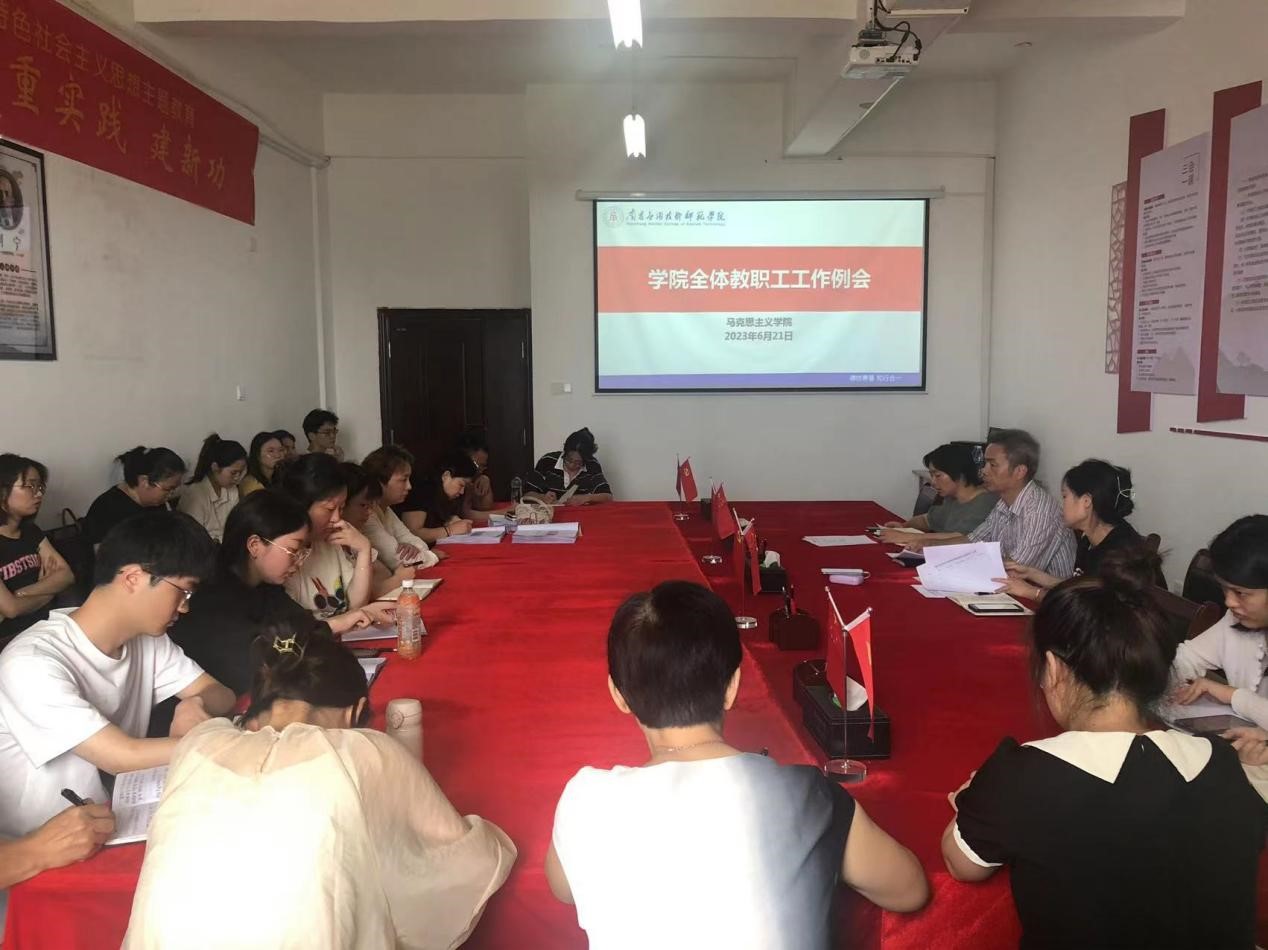 6月21日下午,yl6809永利官网在1511会议室召开了第十四次全体教职工例会。院长、书记文道贵,党总支副书记李婷,副院长张丹,各教研室主任,各科室负责人以及学院全体教职工参加,会议由院长、书记文道贵主持。