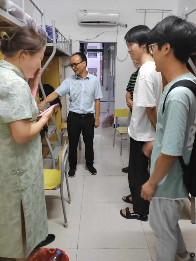 为深入了解2023级新生报到后的住宿情况,掌握学生的思想动态及心理状况,确保学生管理工作有序、平稳开展和推进,9月2日傍晚,校党委副书记蓝贤发、yl6809永利官网党总支书记张欣康、yl6809永利官网院长文道贵一行走访了永利官网2023级新生寝室,送去学校和学院领导对新生的慰问与关怀。