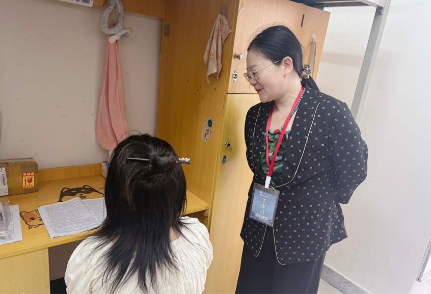 “欢迎你们!到学校还适应吗?从哪里来?对学校的印象怎么样?”一到寝室,胡晓娥就详细询问了新生家乡情况、生活情况和来校报到后的感受,与大家热情交流,祝贺他们开启大学新征程,希望他们能尽快适应大学的学习和生活。她还鼓励大家不仅要学好专业知识,还要积极参加学校组织的各项活动,培养实践能力,拓宽视野,追求进步,坚定理想信念,树立正确的人生观和价值观。胡晓娥一行还查看了宿舍硬件设施和卫生情况,并要求有关部门要及时处理和改善存在的问题,确保学生有一个良好的学习和生活环境。