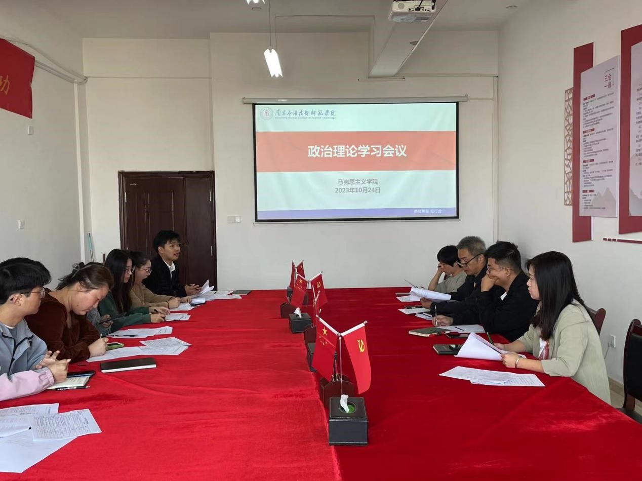 2023年10月24日上午9点,学院在1511会议室召开了政治理论学习会议。院长文道贵、党总支书记张欣康、党总支副书记李婷、副院长张丹及全体行政人员参加此次会议,会议由党总支书记张欣康主持。