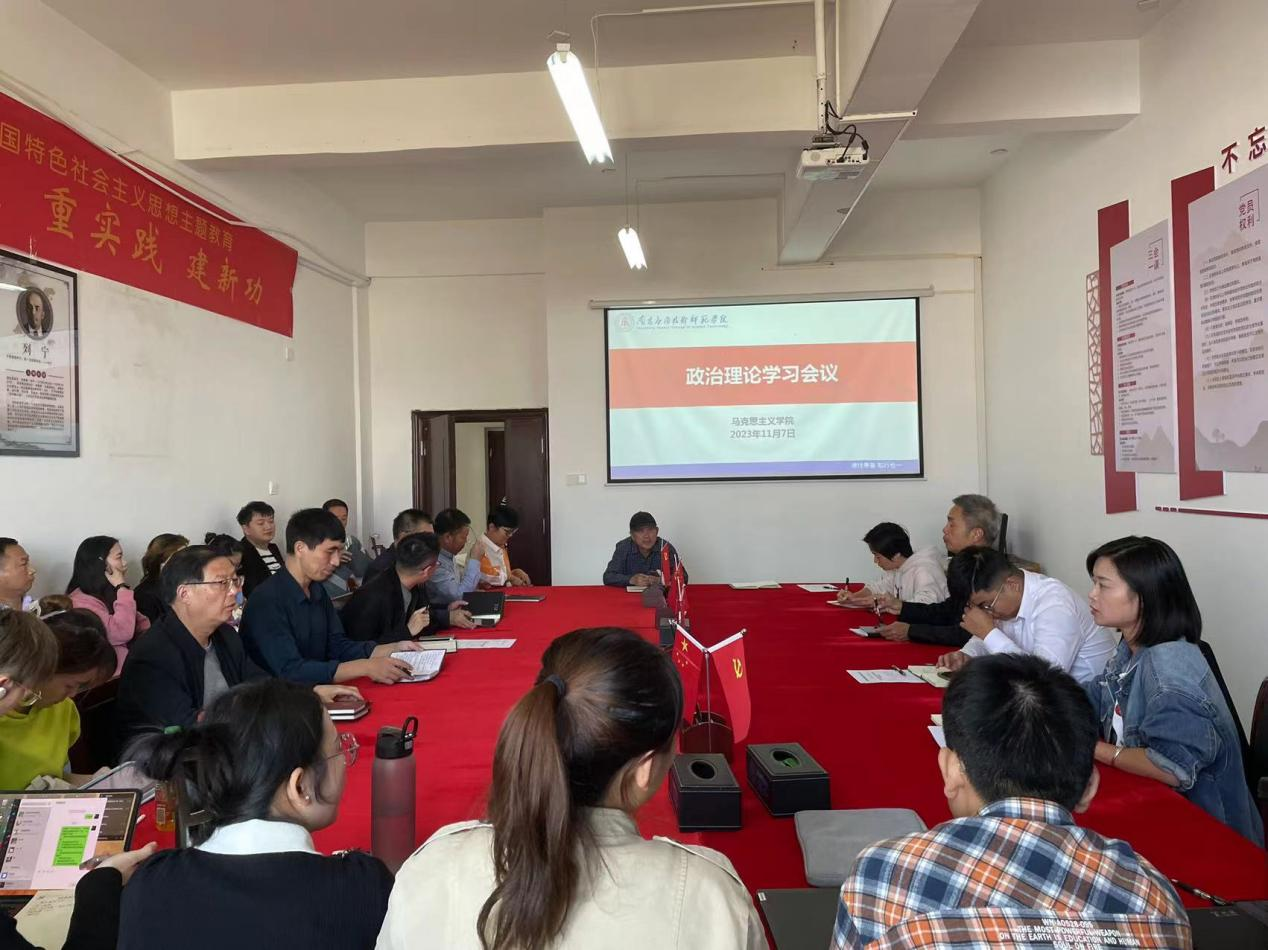 11月7日下午,学院在1511会议室召开了政治理论学习会议。院长文道贵、党总支书记张欣康、党总支副书记李婷、副院长张丹及全体教职工参加此次会议,会议由院长文道贵主持。