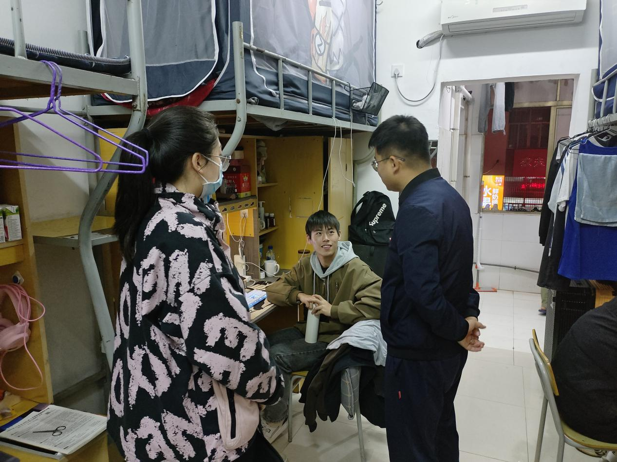本次走访中,张欣康一行对宿舍楼消防设施仔细查看,查看宿舍内的插线板、电源、插座等设施是否安全,告诫学生注意消防安全,做到人离寝室即断电,提醒学生们正确使用电器设备,避免电器故障引发火灾等安全问题;加强学生安全用电意识,引导学生不在宿舍使用大功率及违规用电器,维护自身生命财产安全;关心关爱学生,加强师生之间沟通,与学生们进行深入交流,做实寝要下到、面要见到、心要谈到、风险要预判到,扎实做好各项学生工作。