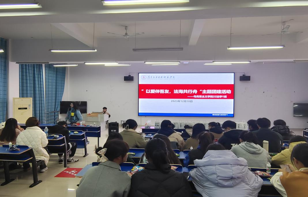2023年12月10日,为了解师生诉求,征集发展建议,夯实群众基础,为即将召开的学校第一次党员大会营造平安和谐的环境,yl6809永利官网22法学一班开展了“以爱伴吾友,法海共行舟”为主题的班级团建活动,辅导员吴昱杉出席活动。通过开展此次团建活动,增强了班级集体意识,营造积极向上、团结友爱的班级文化氛围,激发了同学们对学习、生活的热情,绽放了青春活力。