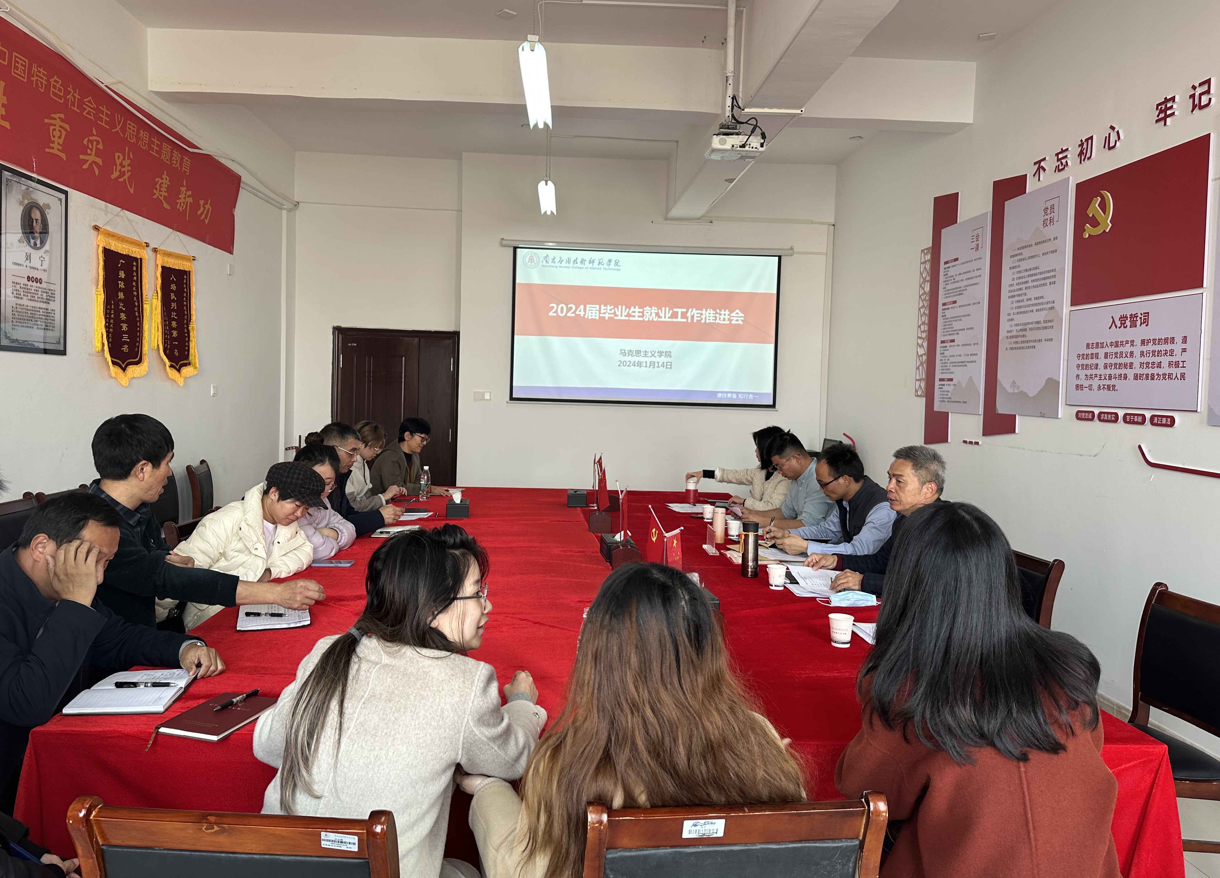yl6809永利官网于2024年1月14日在1511会议室召开2024届毕业生就业工作推进会,此次会议由院长文道贵主持,校党委副书记蓝贤发、马院党总支书记张欣康、副书记李婷、各论文实习指导老师及毕业班辅导员参会。