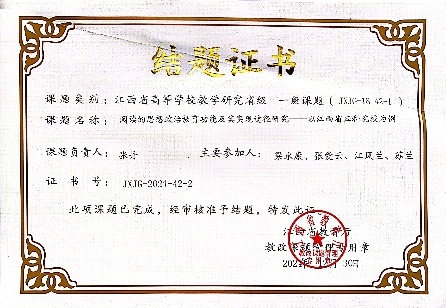 近年来,她致力于课程建设和教学改革。主持完成省高校教学改革项目1项,主持省级课题1项,参与省级课题2项,发表学术论文5篇。在教学上,她曾两次获省级青年教师技能大赛三等奖。她还参与指导学生社会实践及毕业实习,指导法学专业毕业论文写作。