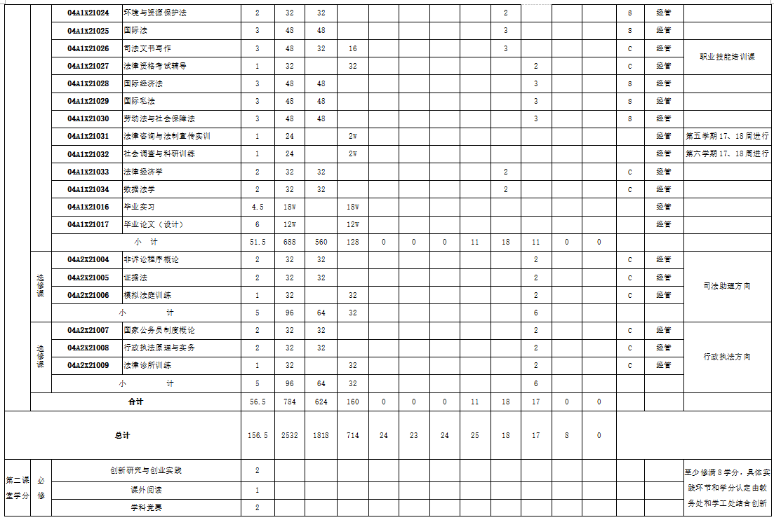 专业特色课程:习近平法治思想概论、数据法学、法律经济学、法律资格考试辅导、模拟法庭实训、法律诊所实训、中国公务员制度概论、非诉讼程序概论、法律咨询与法制宣传实训、社会调查与科研训练。