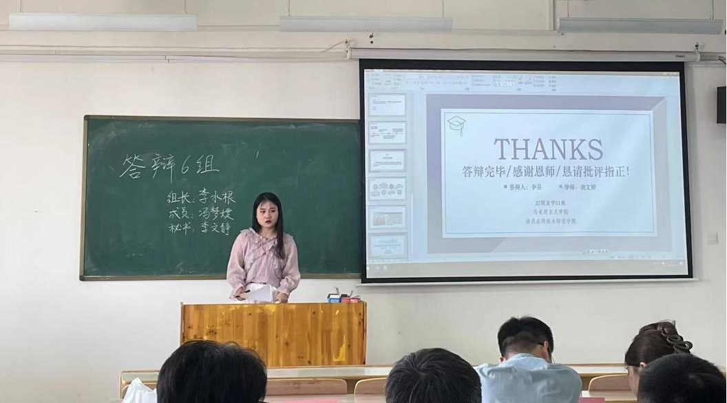 论文答辩过程分为学生陈述、答辩教师提问和学生答辩三部分。学生通过展示PPT详细地介绍论文的主要论点、论据和写作体会。答辩教师对论文认真评审,指出论文的优点,提出论文中存在的问题,并与学生交流修改意见。同学们认真记录,根据答辩老师的意见,查漏补缺,完善最终论文稿,努力达到毕业论文要求的质量。