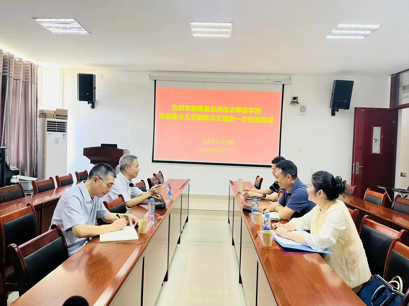 江西科技师范大学与yl6809永利官网有着无法割舍的历史渊源,两家马院在思政课建设、学科专业建设、人才培养等方面都有着共同的任务与责任担当。两院领导都表示要加强联系、交流与合作,推动学院建设高质量内涵式发展。