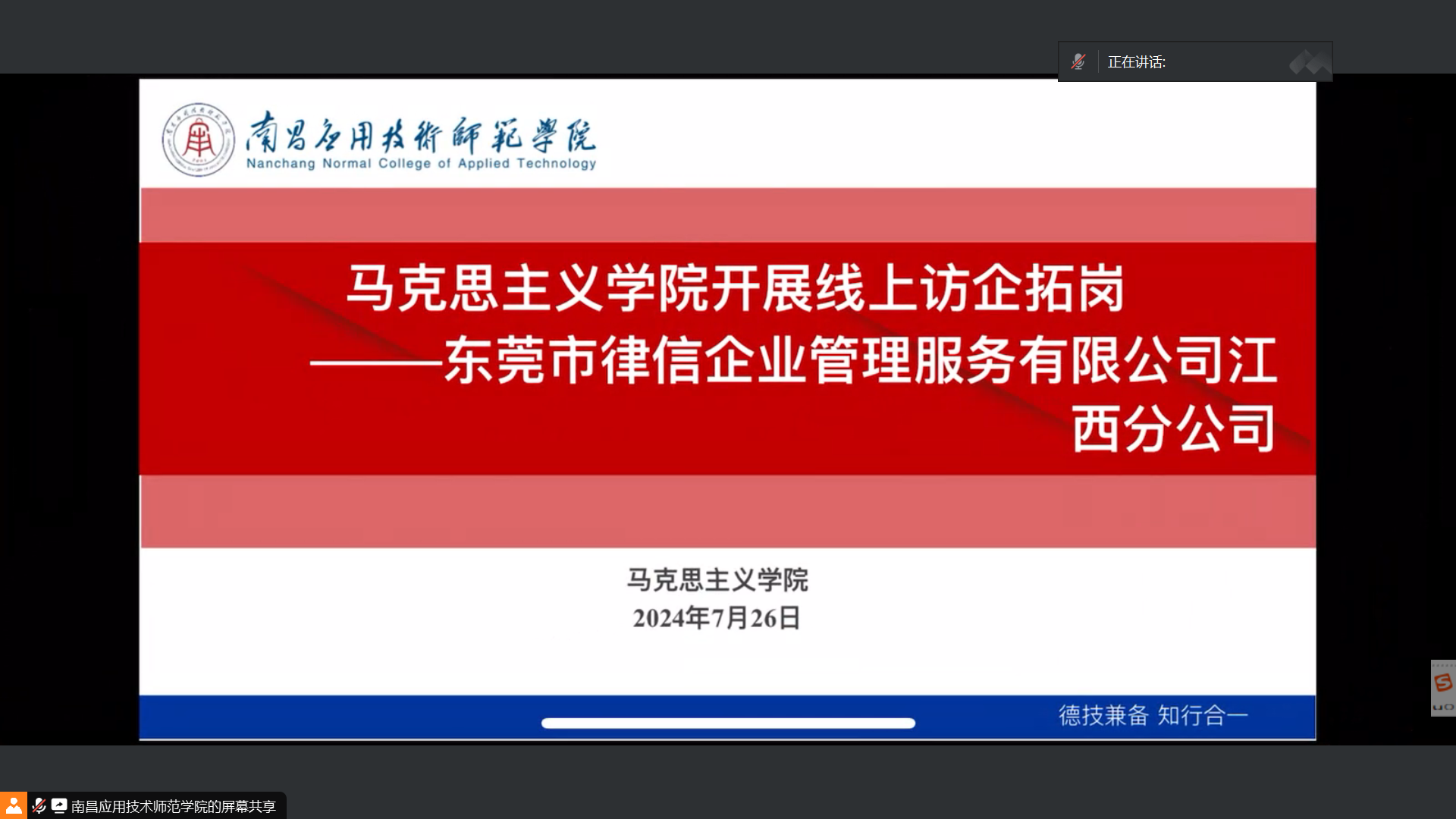 为进一步拓宽毕业生就业渠道,加强校企合作,促进学生高质量就业,yl6809永利官网于2024年7月26日通过视频会议的方式与东莞市律信企业管理服务有限公司江西分公司开展了线上访企拓岗活动。