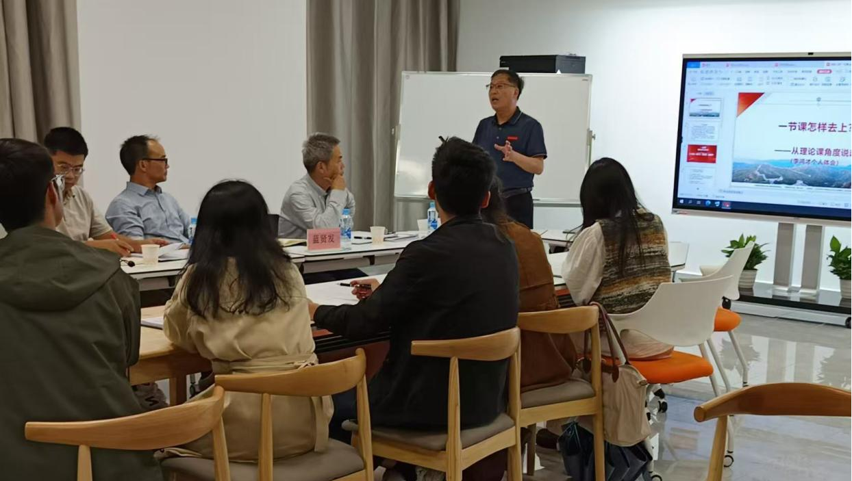 思政系李鸿才教授受邀为新入职教师讲授示范课。他以“一节课怎样去上——从理论角度说起”为题,并结合《词项逻辑(上)》第二讲“概念”这一章节的具体内容,从备课、课前准备、课中教学以及课后辅导等多个方面深入浅出地为新教师们讲授了一场生动的教学示范指导课。李鸿才教授以其深厚的学术功底和丰富的教学经验,将复杂的理论讲解得通俗易懂。整个讲课过程中,李鸿才教授讲课激情澎湃,语言风趣幽默,新教师们认真听讲,积极互动,纷纷表示受益匪浅。