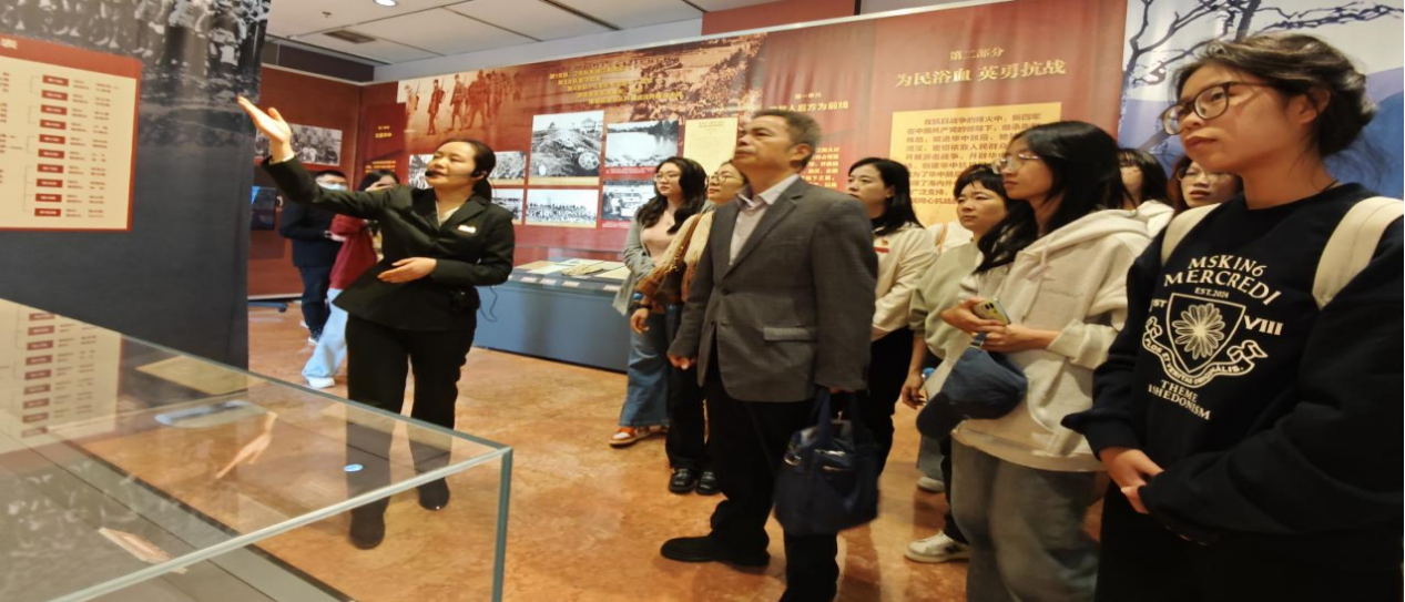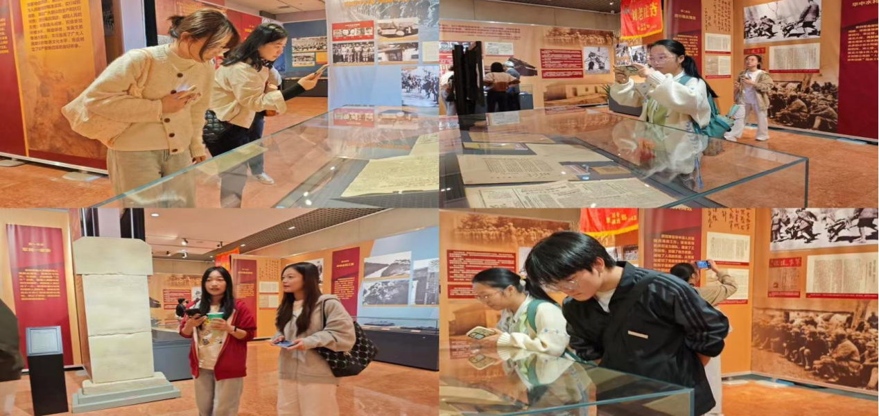 此次活动首先是参观“民心向背决定着历史的选择——庆祝中华人民共和国成立75周年新四军纪念馆馆藏革命文物巡展”。该展览由国家文物局指导,江苏省文化和旅游厅、江苏省文物局、盐城市人民政府主办,盐城市文化广电和旅游局、南昌市文化广电旅游局、新四军纪念馆、南昌新四军军部旧址陈列馆、全国新四军纪念场馆联盟联合承办,旨在深入学习贯彻落实习近平总书记在盐城考察时重要指示精神,铭记历史、缅怀先烈、弘扬革命精神,以新四军历史为生动教材,开展革命传统教育和爱国主义教育。师生们走进展馆。在讲解员的认真讲解下,大家对新四军在抗日战争中建立起来的军民鱼水关系理解更深,对新四军的英勇抗日事迹和卓越贡献,有了更加深刻的掌握。