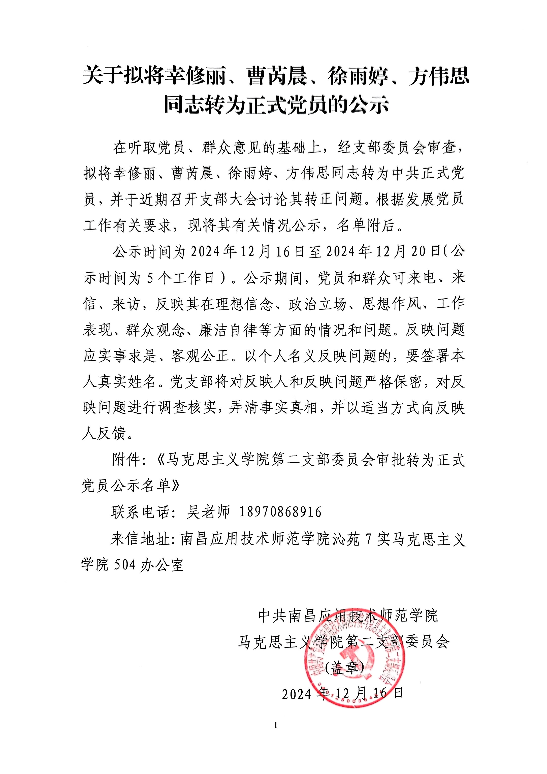 首页栏目 通知公告 学院新闻 习近平思想学习专栏 主题教育学习 院长书记信箱 您现在的位置是:首页 > 首页栏目 > 通知公告 关于拟将幸修丽、曹芮晨、徐雨婷、方伟思同志转为正式党员的公示 党政办2024-12-162609 下一篇 关于确定胡琛为2024 年度宣传思想文化工作 “先进个人”的公示