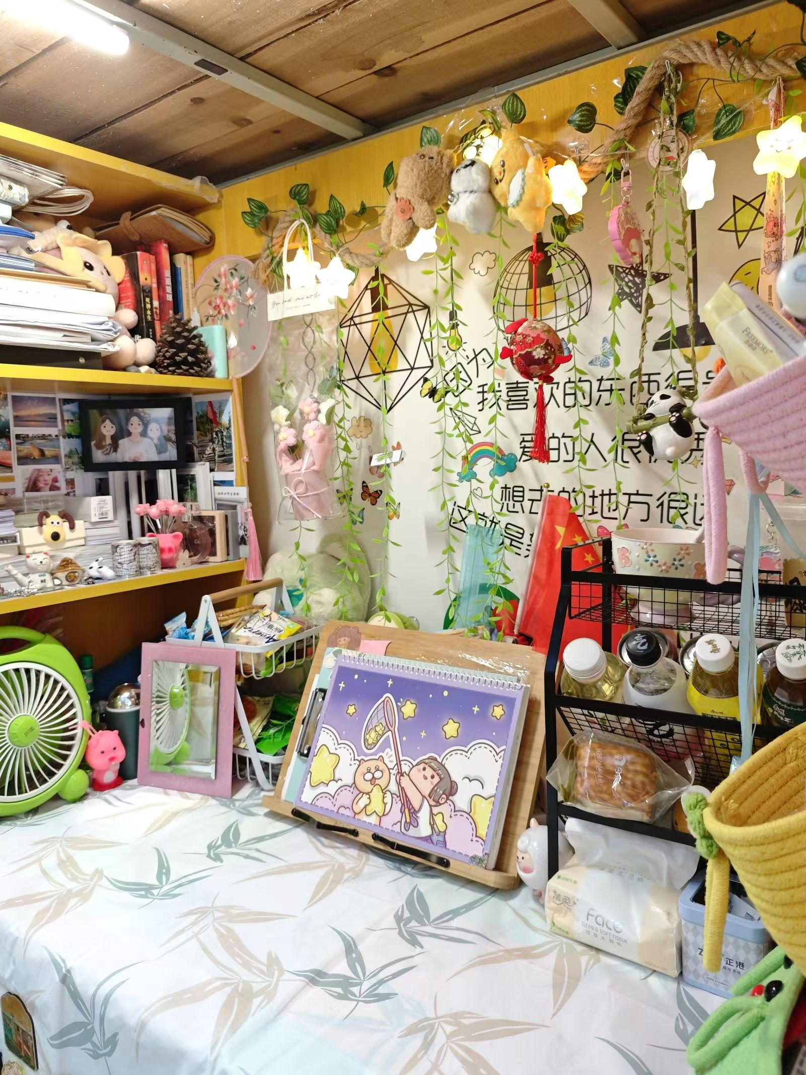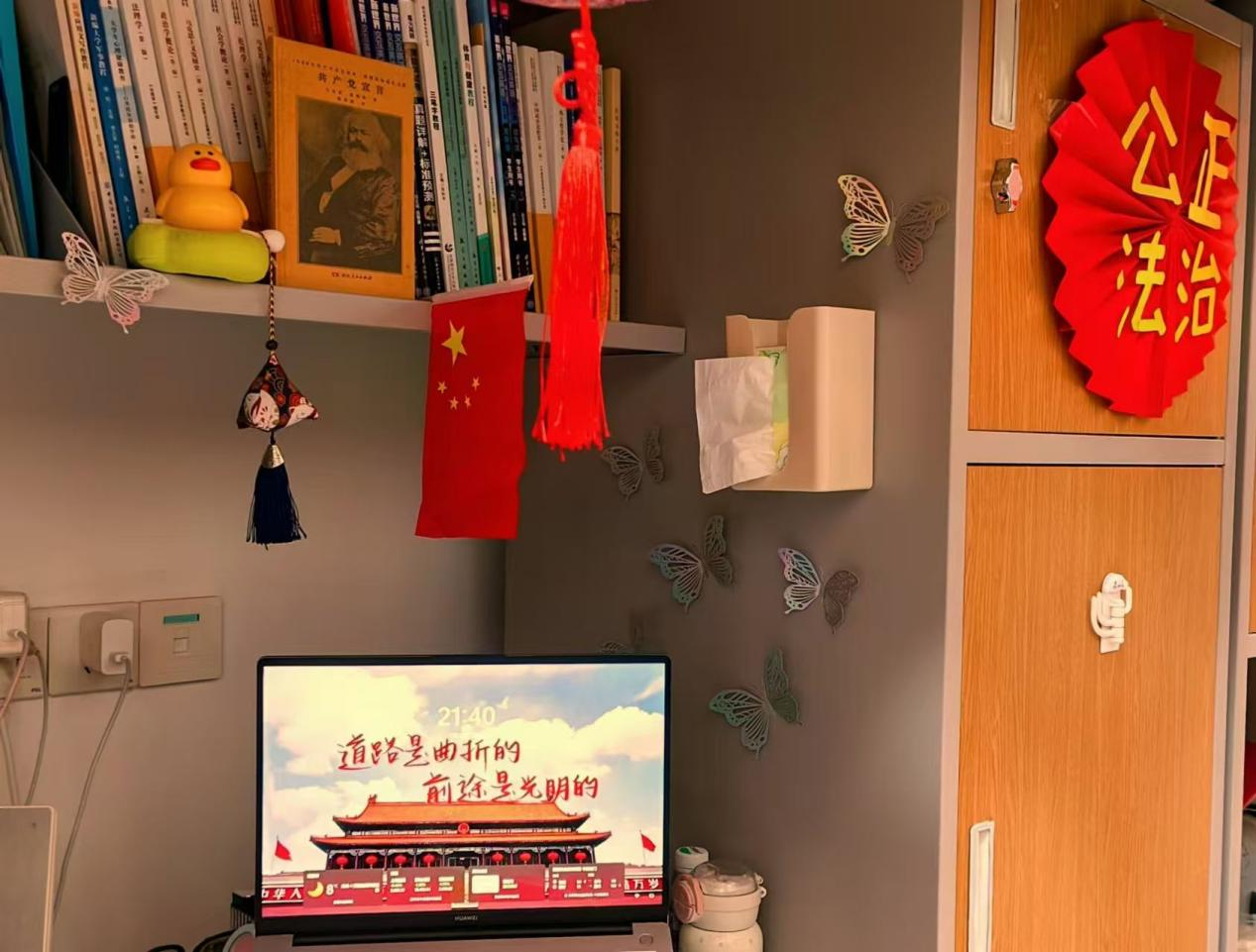 寝室以多种形式展现奋斗历程,学习上攻坚克难,生活里自我成长。励志装饰随处见,演讲故事诉真情。寝室成自强阵地,为校园文化添活力,展学子不屈风采,寝室已超越其传统居住空间的范畴,蜕变成为培育自强不息精神的沃壤,凝聚着青年学子的奋进力量,为校园文化建设注入了磅礴动力与生机活力。