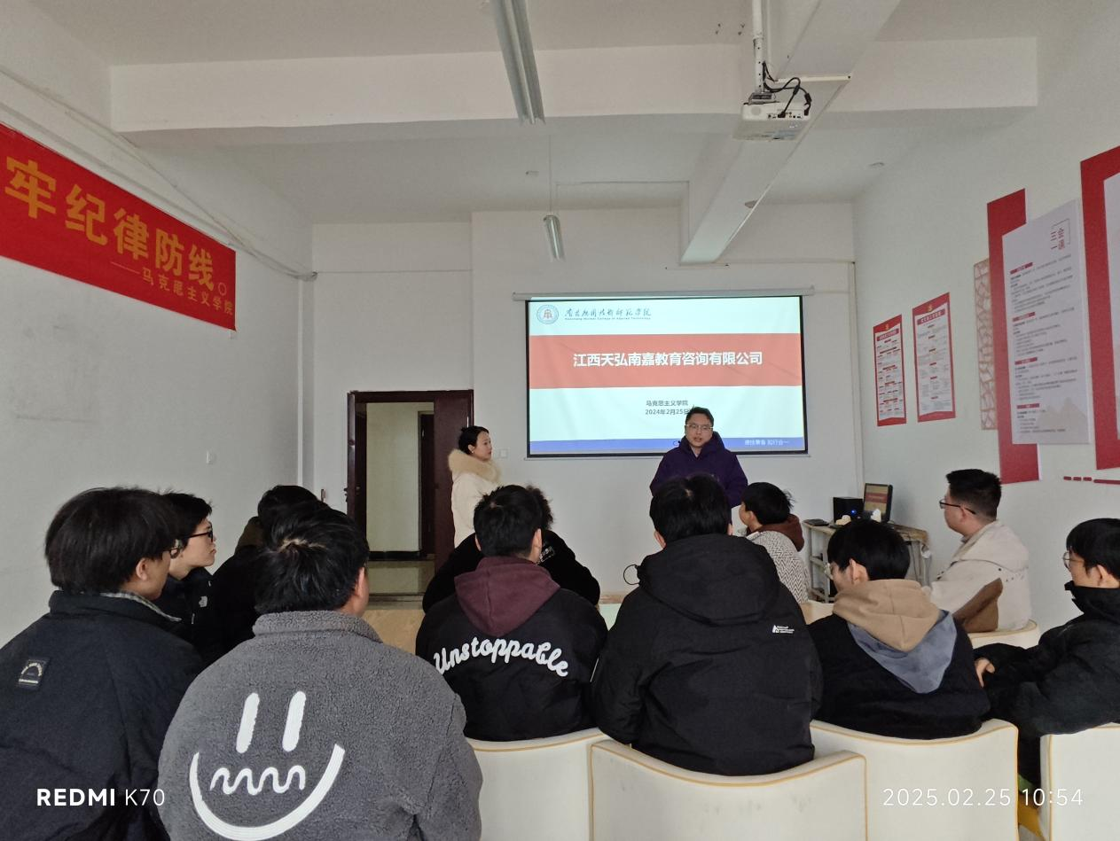 2025年3月5日,马克思主义学院迎来了一场别开生面的就业活动。永利官网邀请到江西航天宏图信息技术有限公司、江西天弘南嘉教育咨询有限公司成功举办了一场小型而精准的招聘会,为即将步入社会的学子们搭建了一个直面企业的宝贵平台。