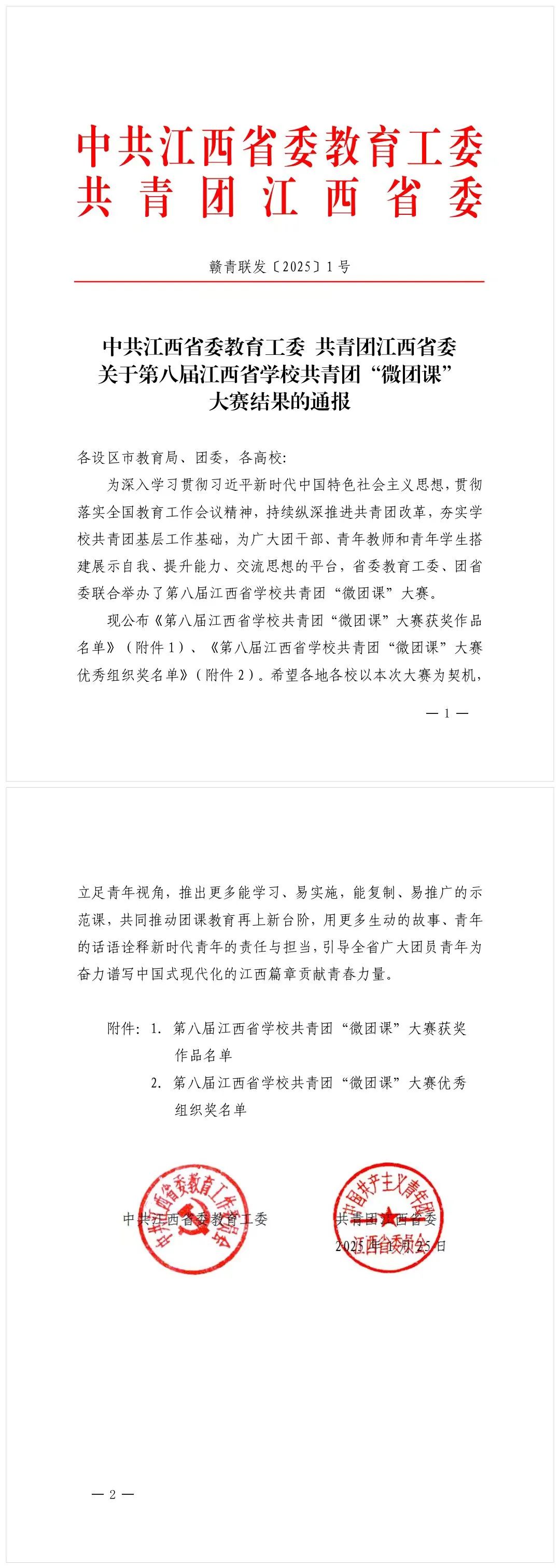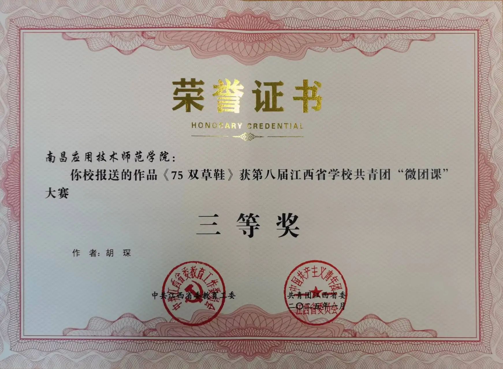 近期,我校师生在省委教育工委、团省委联合举办了第八届江西省学校共青团 “微团课”大赛中取得了优异成绩。其中永利官网胡琛老师获三等奖。