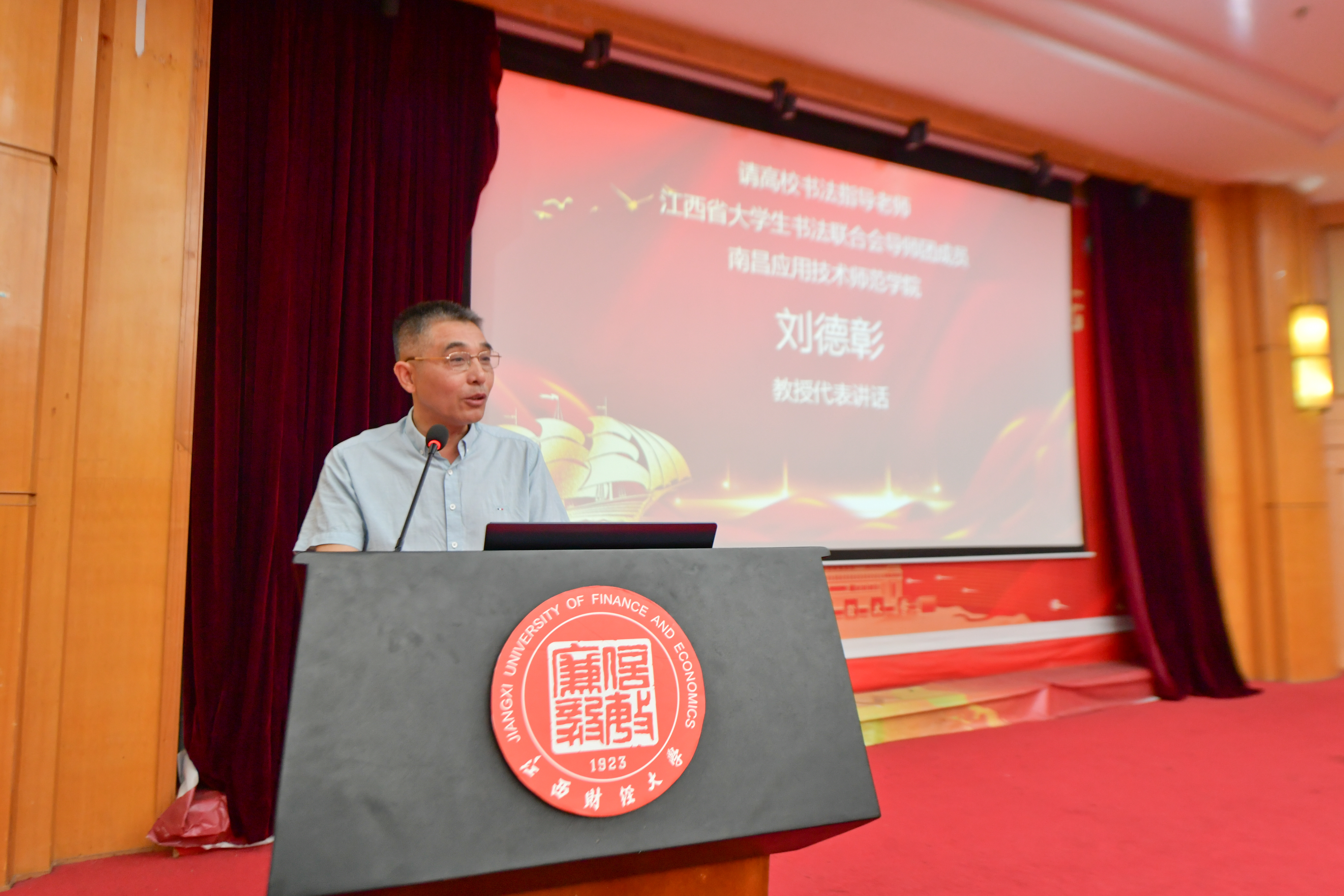 2025年5月25日上午,江西省第十二届大学生书法展开幕暨颁奖仪式,在江西财经大学蛟桥园北校区举行。江西省硬笔书法家协会主席肖辉、江西财经大学副校长袁红林、全省高校的书法协会(社团)指导教师及本次书法展获奖选手出席大会。