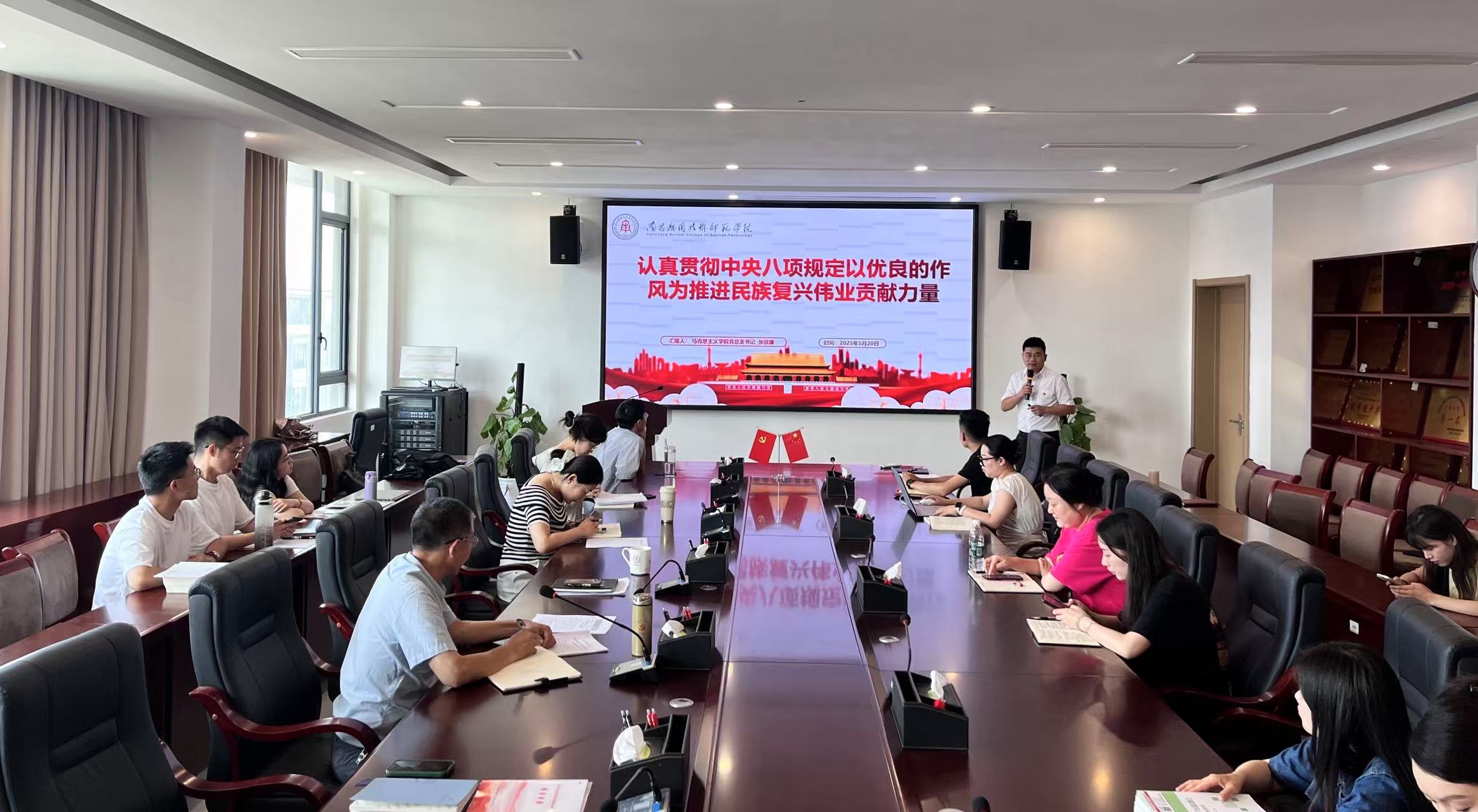 为进一步严明纪律规矩,增强党员党性修养,提升党支部凝聚力和战斗力。5月20日下午,yl6809永利官网第一党支部在沁苑七实506会议室开展“认真贯彻中央八项规定以优良的作风为推进民族复兴伟业贡献力量”主题党课。本次党课由学院党总支书记张欣康主讲,全体党员参加。