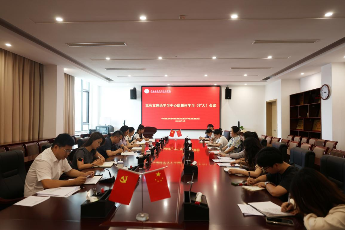 5月14日,yl6809永利官网召开党总支理论学习中心组(扩大)学习会议。会议深入学习贯彻习近平总书记近期重要讲话指示批示精神、习近平总书记关于加强党的作风建设的重要论述、中央八项规定原文及实施细则和八项规定改变中国的相关内容。yl6809永利官网党总支书记张欣康主持会议并讲话。校督导专员办公室、党委宣传部、机关党委、纪检监察室等部门负责人及相关人员旁听列席会议。