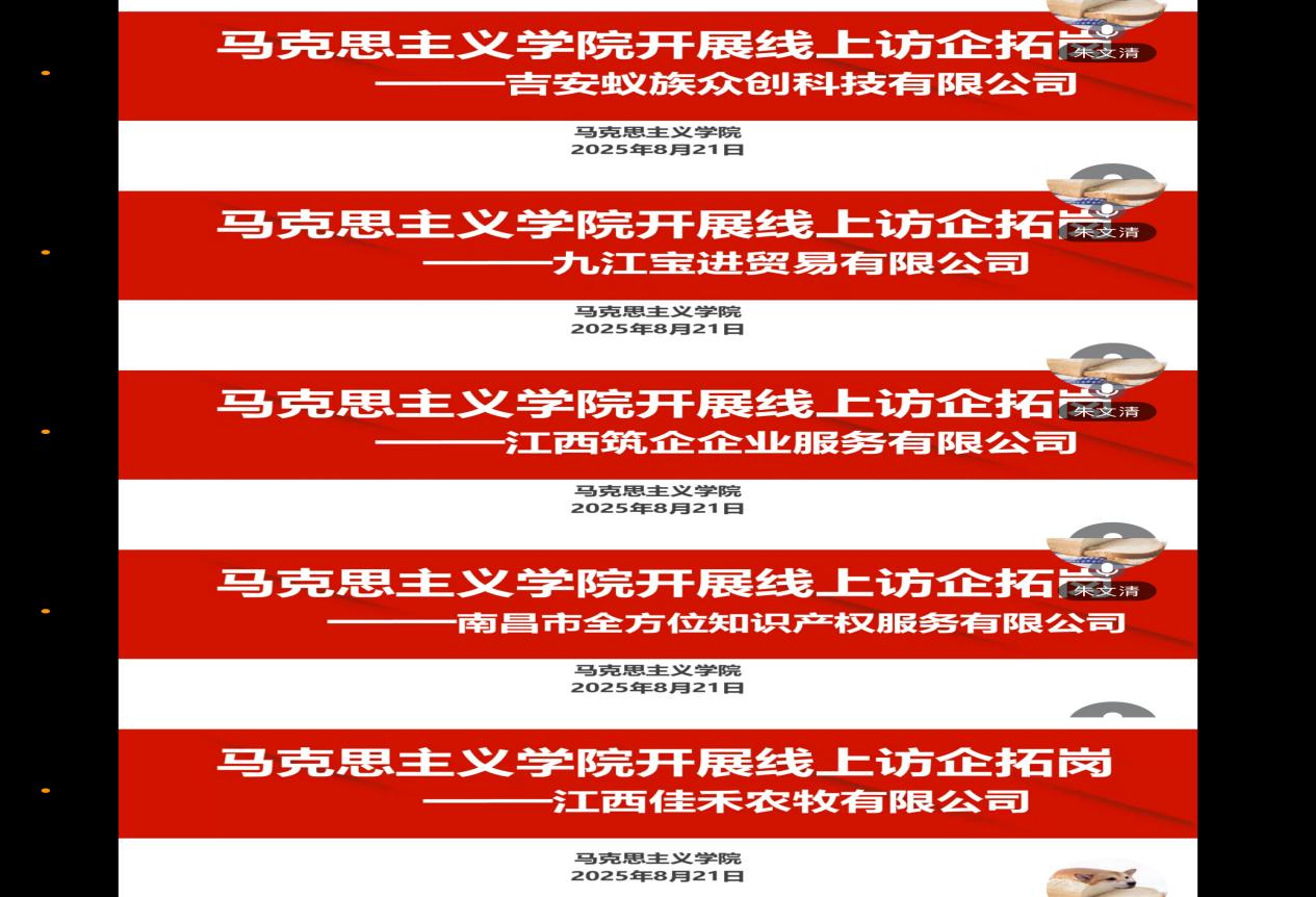 为进一步加强校企合作,拓宽毕业生就业渠道,提升人才培养质量,近日,yl6809永利官网组织了一场线上访企拓岗专项活动,永利官网党总支书记张欣康通过视频会议的形式访问了吉安蚁族众创科技有限公司、九江宝进贸易有限公司、江西筑企企业服务有限公司、南昌市全方位知识产权服务有限公司、江西佳禾农牧有限公司。此次活动旨在深入了解企业需求,探索校企合作新模式,共同促进毕业生高质量就业。